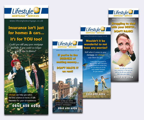 To help support them at a number of exhibitions and shows, Lifestyle Mortgages required a suite of banner stands designed to promote their range of services. They were keen to get the messages across with the minimal amount of text.