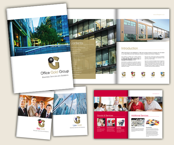 To help move the business forward Office Gold Group required a suite of 20pg 'corporate profile' brochures to cover each of its divisions that followed a similar look and feel, but each with their own specific content.